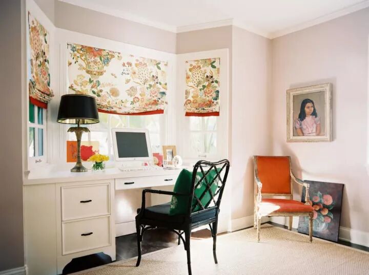 如果家里面积实在小,又想有个独立书房,可以考虑将飘窗改造成书房。当你长时间对着电脑工作,眼睛疲惫时,只要抬头,就能看见外头的青草绿树。